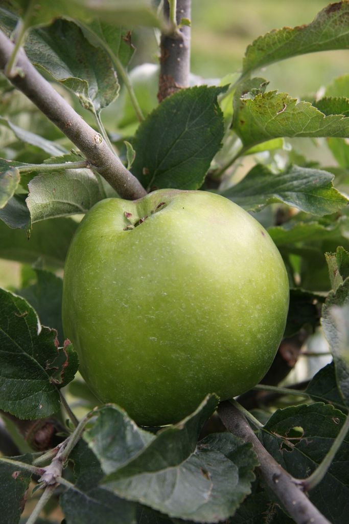 Description: Catshead is an ancient culinary apple with large angular fruit. It's colour is green-pale yellow and flesh is tender, juicy and sweet with a pleasant, acid and slightly perfumed flavour. A staple in pies and baking, its flavour is a useful complement to bacon, pork and other meats. It also cooks to a sharp, firm puree. A suitable shape for parcelling up as dumplings for farmers packed lunches!