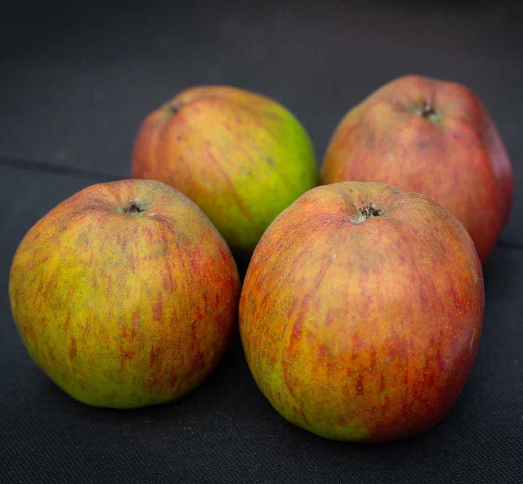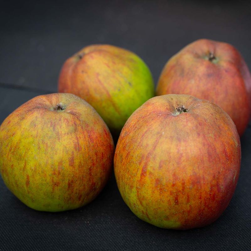 Dark red flush with red stripes over gold. Knobbly exterior conceals yellow perfumed flesh. Intensely flavoured. Read more