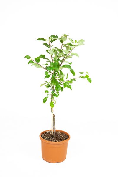 Ideal for patio tubs and smaller spaces as it produces a true mini tree. Height is no more than 2 metres with little support required. Heavy cropping fruit trees may need a permanent stake. Fruiting begins in the first year. Very little pruning needed.