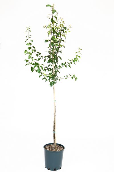 Ideal for patio tubs and smaller spaces as it produces a true mini tree. Height is no more than 2 metres with little support required. Heavy cropping fruit trees may need a permanent stake. Fruiting begins in the first year. Very little pruning needed.