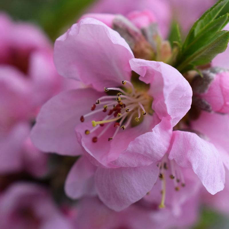 Naturally dwarf variety. Bright pink flowers, large yellow fleshed peaches with superb, melting juicy taste. Self-fertile. Read more