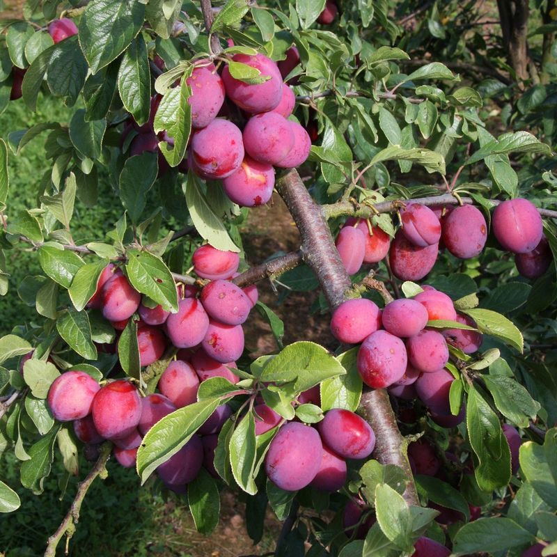 Oval, bright red fruit in August-September for dessert, puddings and preserves. Clean freestone, self-fertile, very productive. Read more