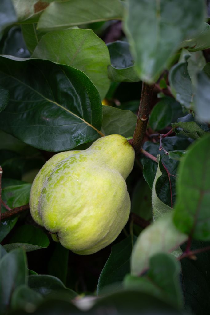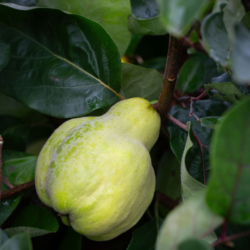 Description: Bereczki is an old traditional variety. Produces pear shaped fruits that are big, juicy and acidic to taste. Yellow flesh turns reddish when cooked. Delicious cooked into Quince jam, Quince cheese (Membrillo) and Quince jelly.