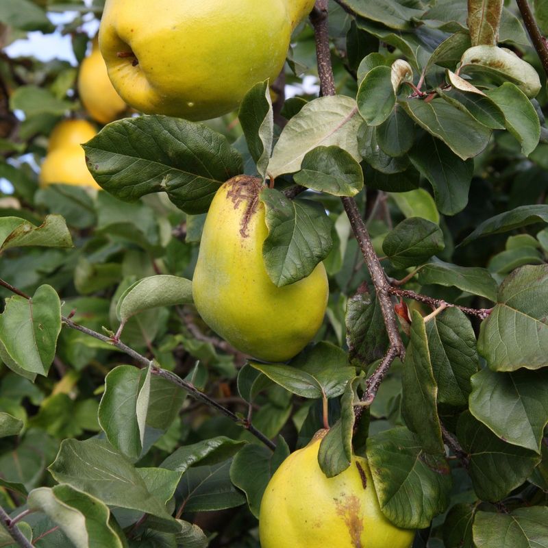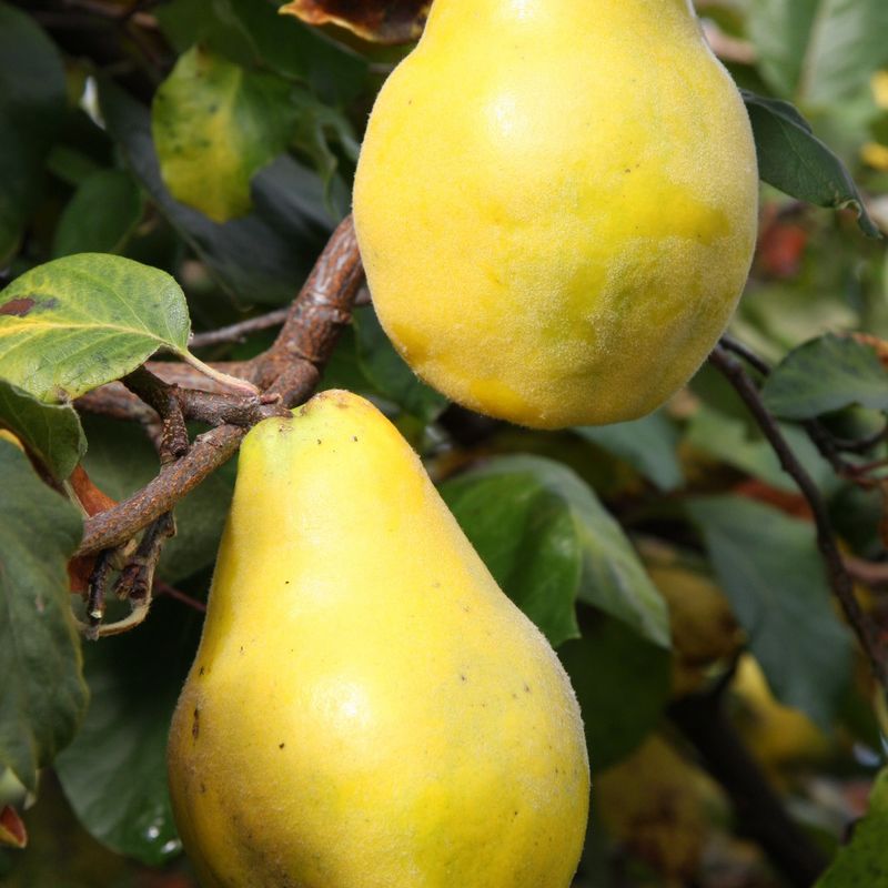 A particularly climatically robust Quince which is very tolerant to fire blight and mildew, resistant to leaf spot disease and does not show any browning of the flesh. Pear-shaped yellow fruits are ready for picking from October and have a particularly intense apple-quince aroma.