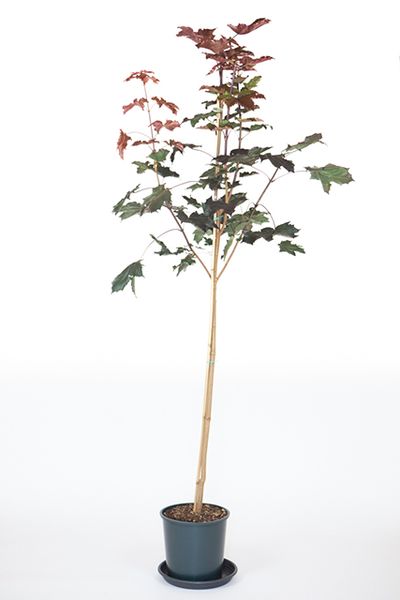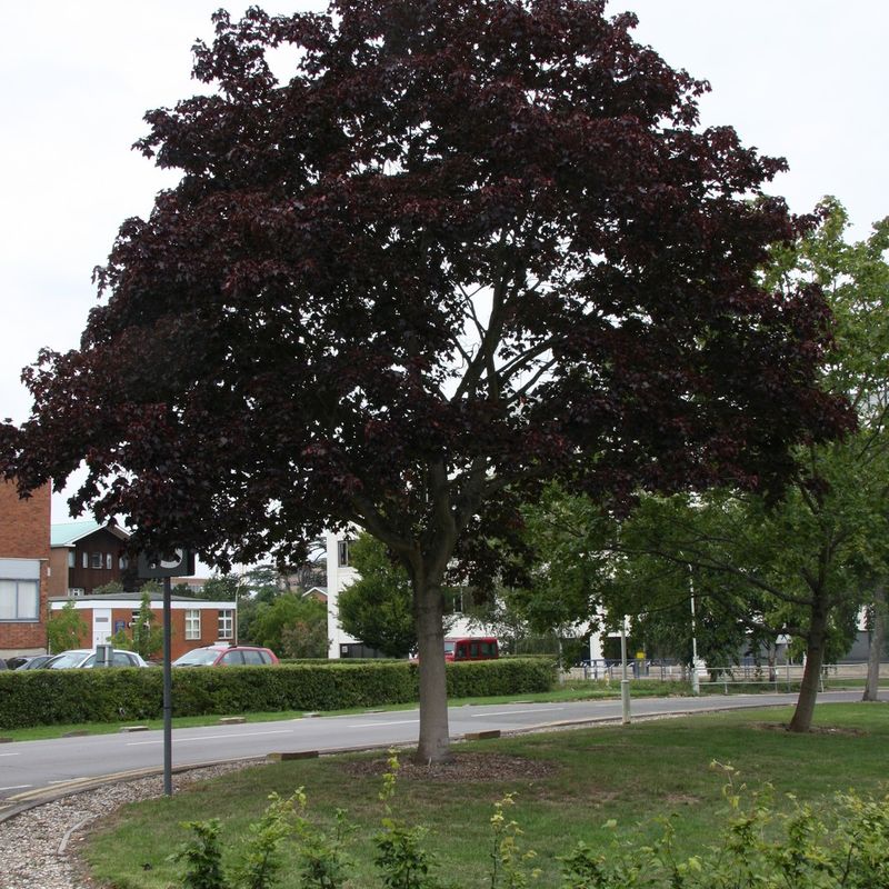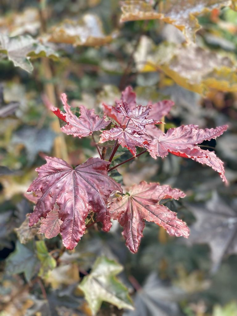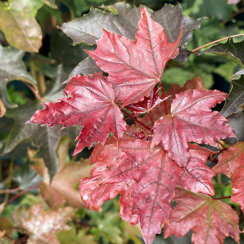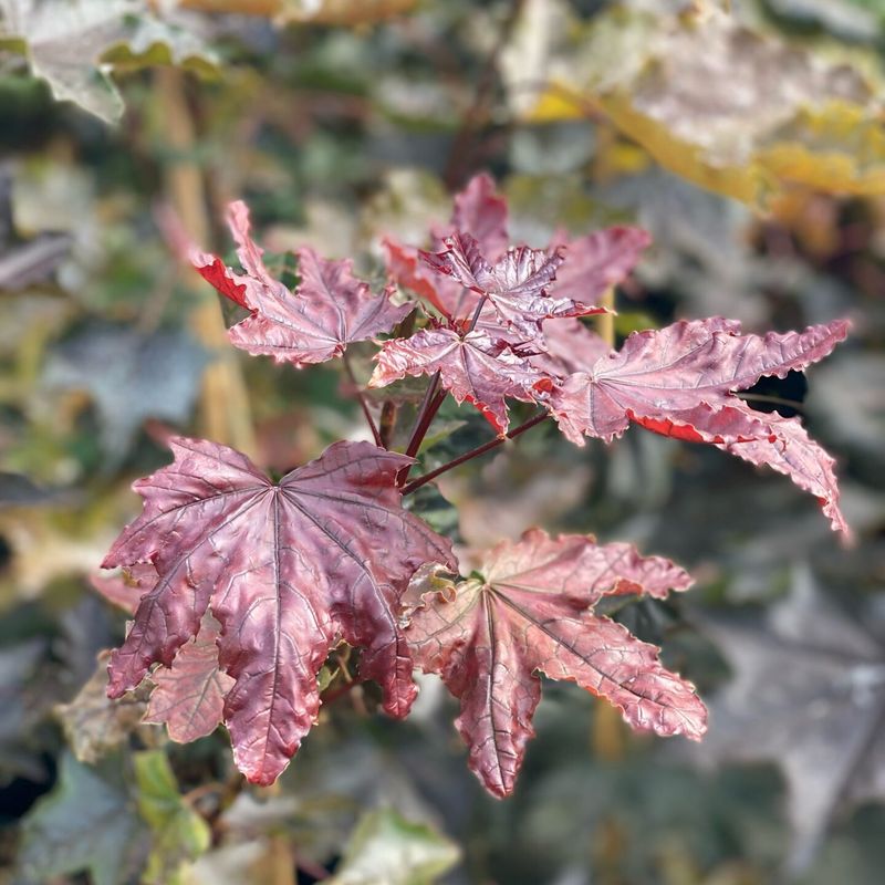 Lime green flowers tinged red in April followed by large, intense purple leaves turning orange in autumn. Read more