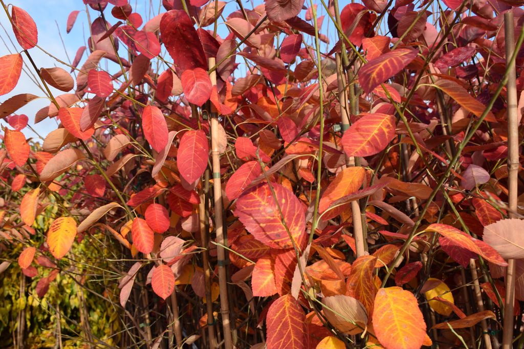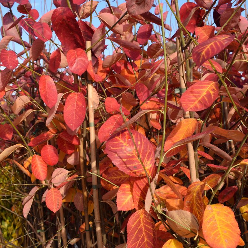 This small tree or large shrub has beautiful orange-red autumn colours. Profusion of small white flowers in spring. Read more