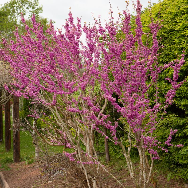 A beautiful small tree with shiny rich green, heart shaped leaves. Rich purple-pink flowers in late April-May. Read more