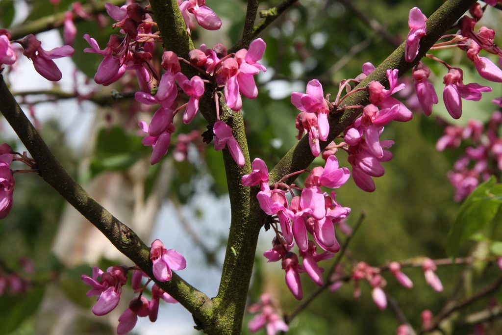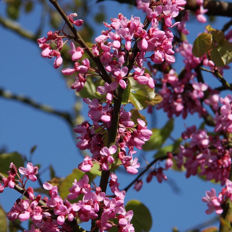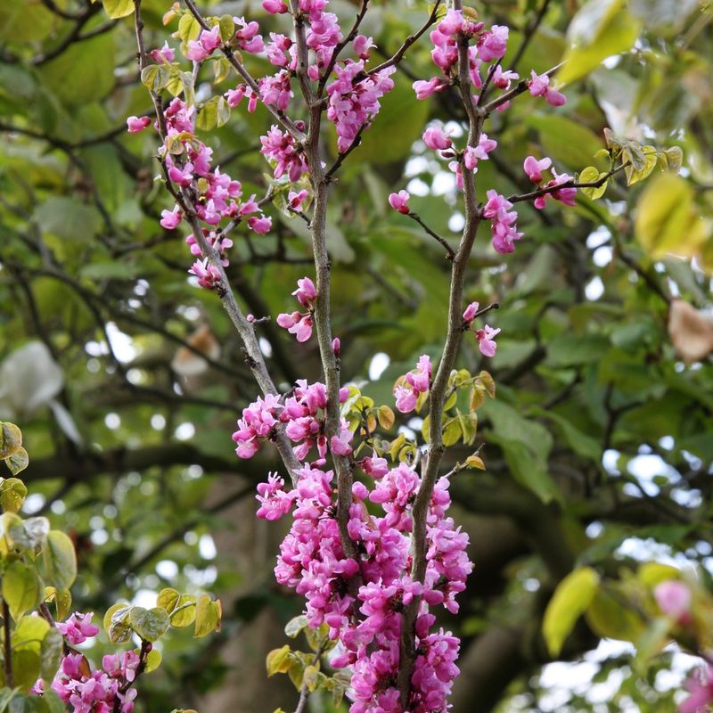 Description: Cercis siliquastrum also known as Judas Tree is a bushy, deciduous small tree native to Southern Europe and Western Asia. Clustered, rosy pink-lilac, pea shaped flowers in May on the bare branches, followed by purple seed pods. Glaucous, heart shaped green leaves emerge after the flowers turning yellow in autumn.