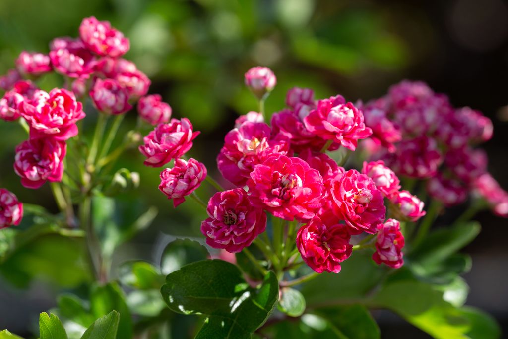 Double, pink-scarlet flowers and dark green foliage. Small red haws in autumn. Read more