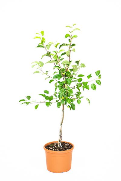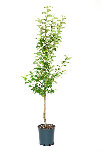 Ideal for patio tubs and smaller spaces as it produces a true mini tree. Height is no more than 2 metres with little support required. Heavy cropping fruit trees may need a permanent stake. Fruiting begins in the first year. Very little pruning needed.