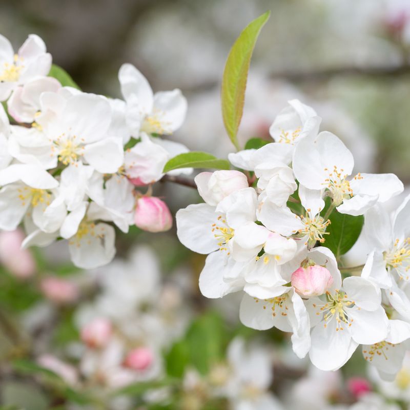 Large, white/pink flowers in April/May. Small red-yellow fruits holding well into winter. Medium height. Read more