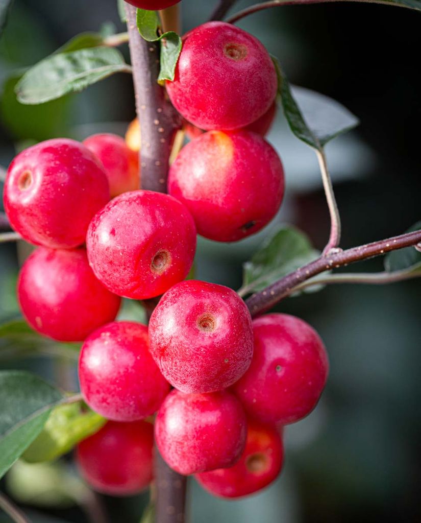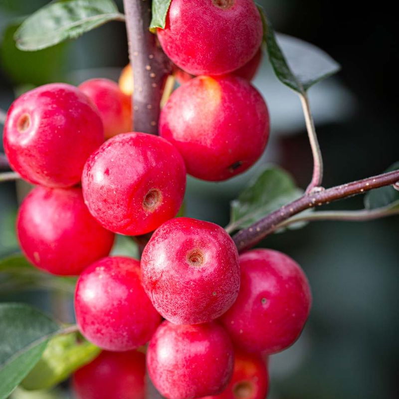 Pure white blossom, glossy red fruits which persist into November. Disease resistant. Small in height. Read more