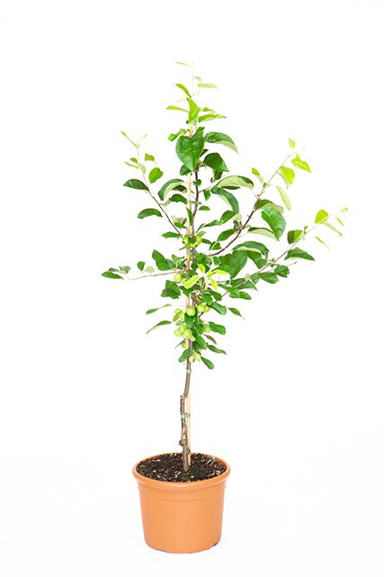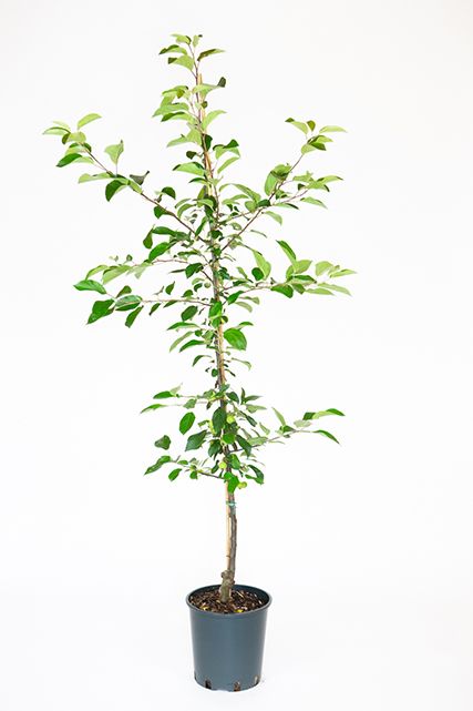 Ideal for patio tubs and smaller spaces as it produces a true mini tree. Height is no more than 2 metres with little support required. Heavy cropping fruit trees may need a permanent stake. Fruiting begins in the first year. Very little pruning needed.