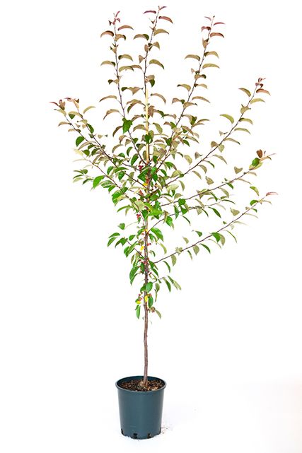 Ideal for patio tubs and smaller spaces as it produces a true mini tree. Height is no more than 2 metres with little support required. Heavy cropping fruit trees may need a permanent stake. Fruiting begins in the first year. Very little pruning needed.