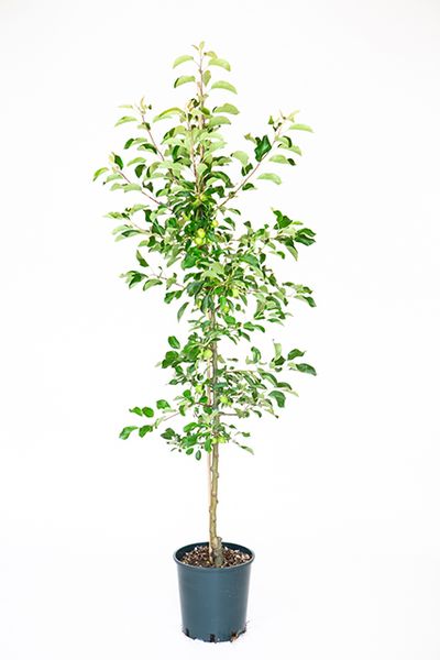 Ideal for patio tubs and smaller spaces as it produces a true mini tree. Height is no more than 2 metres with little support required. Heavy cropping fruit trees may need a permanent stake. Fruiting begins in the first year. Very little pruning needed.